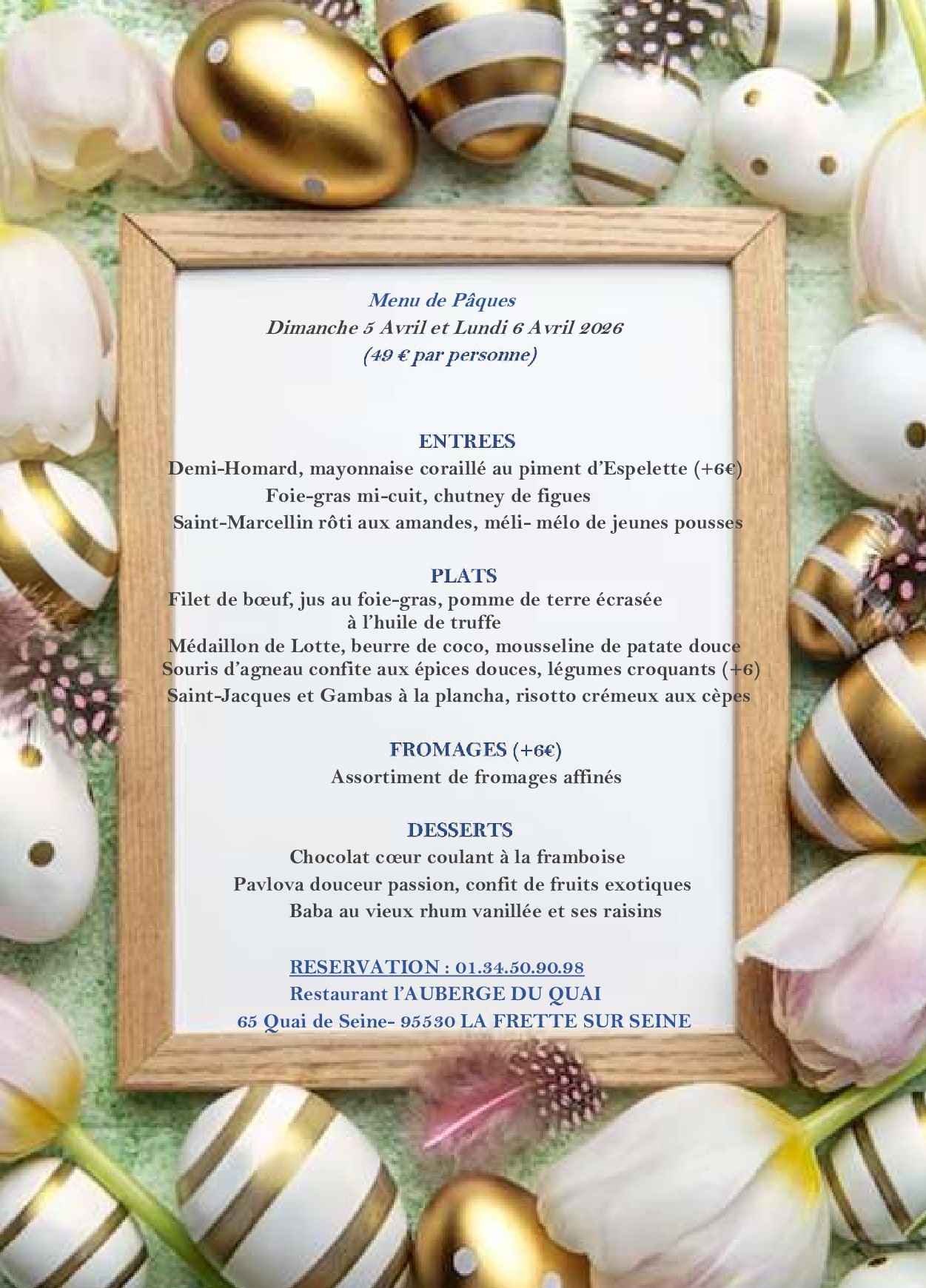 Notre menu est proposé au déjeuner comme au dîner.